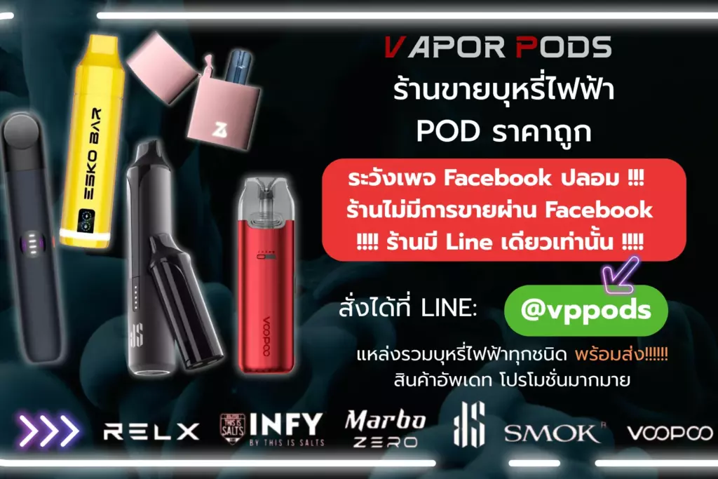 Vapor Pods ขายบุหรี่ไฟฟ้า Pod พอตใช้แล้วทิ้ง พอตพร้อมสูบ หัวพอต ราคาถูก มีสินค้าให้เลือกหลากหลายจากแบรนด์ชั้นนำ จัดส่งทั่วประเทศไทย