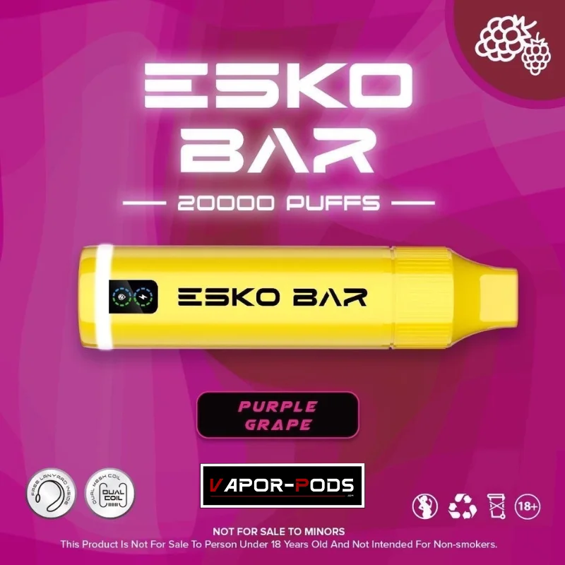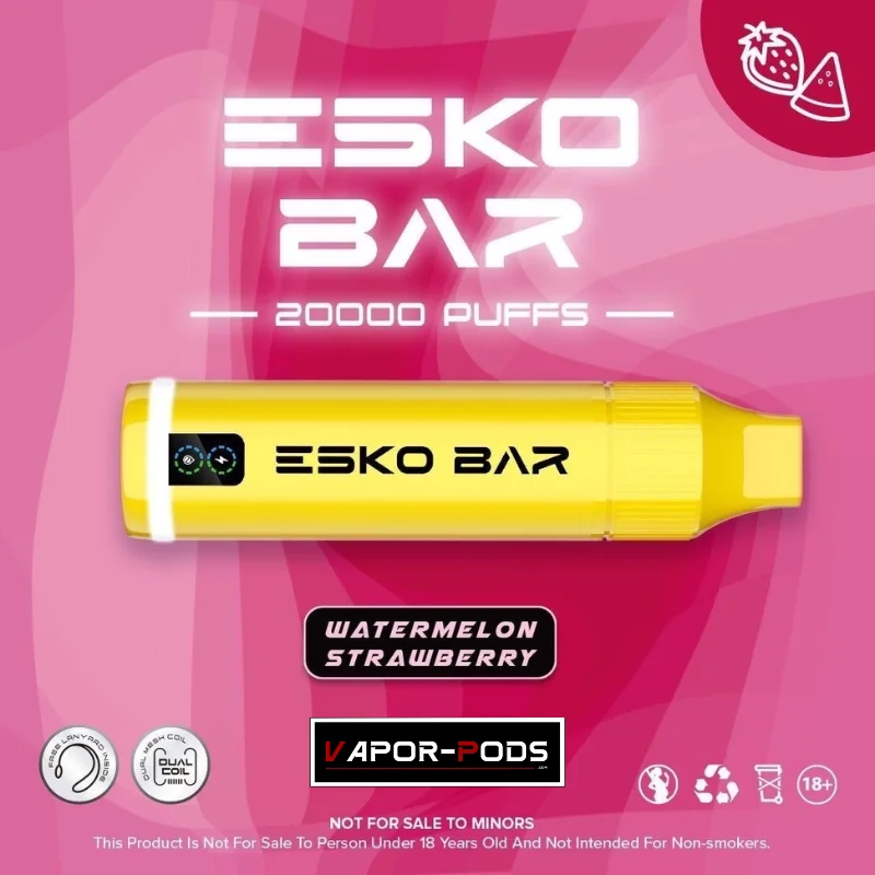 | กลิ่น ESKO Bar 20000 คำ | Apple Aloe, Berry Grape, Bubblegum, Blueberry Ice, Grape, E Melon, Mixberry, Purple Grape, Pink Guava, Strawberry Banana, Sour Strawberry, Cola, Watermelon Ice, Strawberry Kiwi, Watermelon Strawberry |