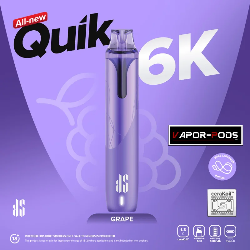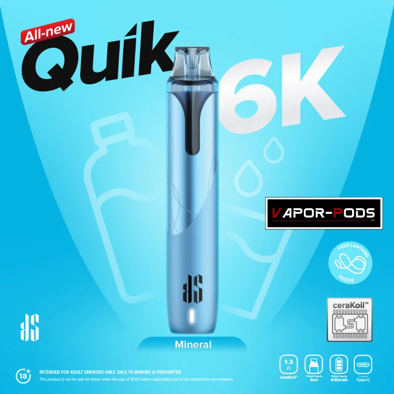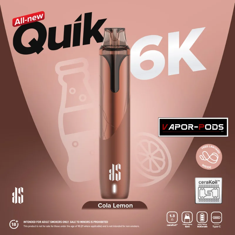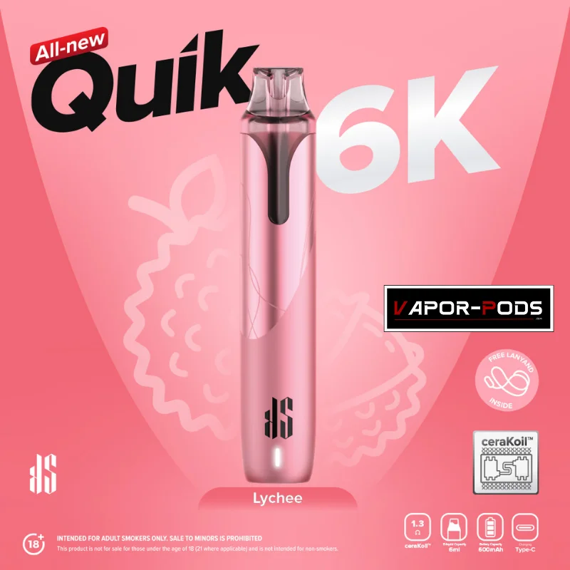 | กลิ่น KS Quik 6000 | Classic Tobacco, Cola Lemon, Creamy Tobacco, Extra Menthol, Grape, Guava, Honeydew, Lime, Lychee, Mineral, Mixed Berries, Osamanthus Oolong Milk Tea, Pineapple, Strawberry Ice Cream, Strawberry, Triple Mango, Watermelon |