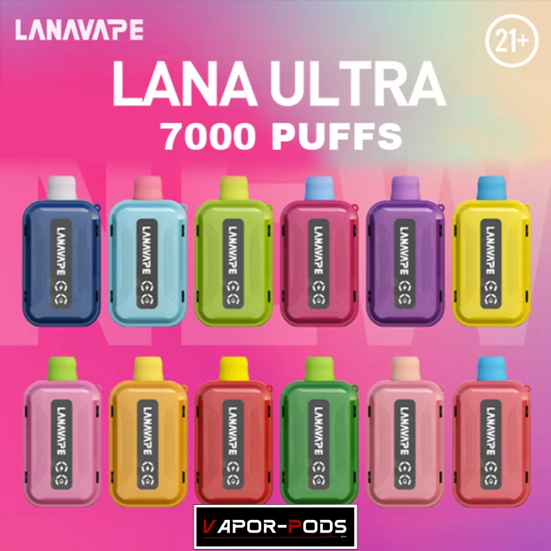 | กลิ่น LANA ULTRA 7000 คำ | Double Mint, Chilled Watermelon, Dongding Oolong Tea, Honey Grape, Jasmine Tea, Mango Yakult, Mixed Berries, Peach Oolong, Strawberry Kiwi, Strawberry Watermelon, Super Passion Fruit, Ultra Freeze, Grape Ribena |