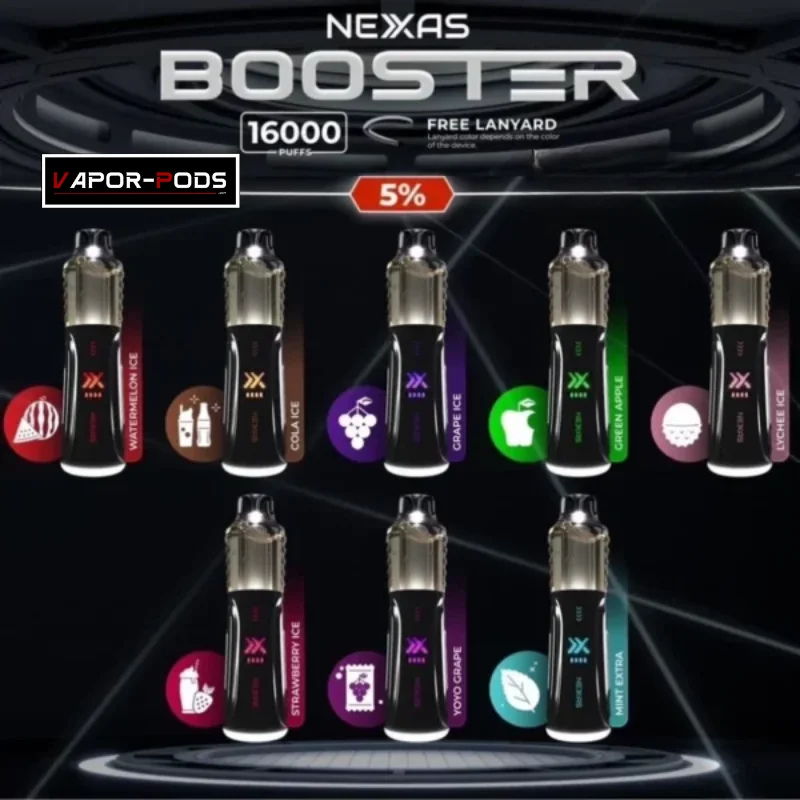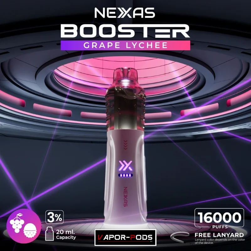 Nexas Booster 16000 Puffs พอตใช้แล้วทิ้ง 16000คำ สูบได้แบบจุใจ ปรับรูลมได้