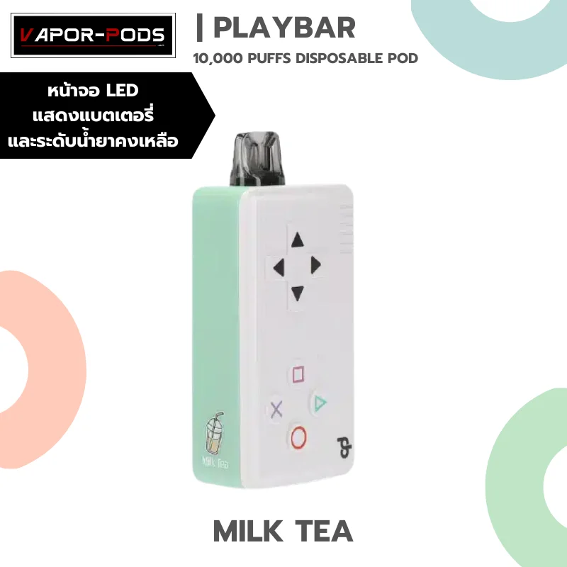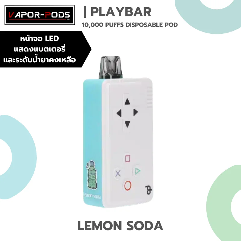 พอตใช้แล้วทิ้ง Playbar 10000 คำเป็นพอตรุ่นแรกที่มีหน้าจอแสดงผลบอกค่าปริมาณคงเหลือของแบตเตอรี่และน้ำยาบุหรี่ไฟฟ้า ดีไซน์เป็นลักษณะจอยของเกมส์เพลย์ ทรงกล่องสี่เหลี่ยมจับพอดีมือ ฟีลสูบกลิ่นชัด มีความหอมหวานและเย็นแตกต่างกันไปตามกลิ่นต่างๆ สนใจสั่งซื้อสินค้าได้ที่ @vppods