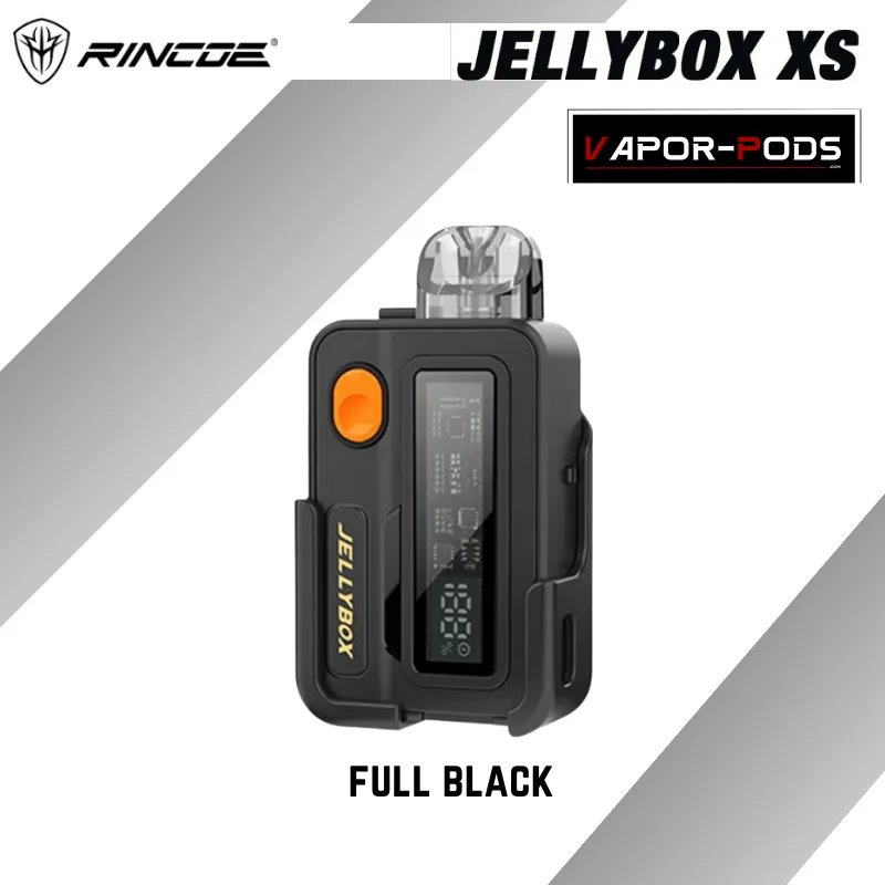 Rincoe JellyBox XS เป็นพอตบุหรี่ไฟฟ้าที่มีดีไซน์สวยงาม คล้ายๆเพจเจอร์ ลักษณะเป็นกล่องสีเหลี่ยมขนาดพอดีมือ และมีน้ำหนักเบา มาพร้อมกับแบตเตอรี่ 1000mAh ปรับวัตต์ได้ และความจุของพอต 2 มิลลิลิตร สามารถเปลี่ยนสลับกรอบแผ่นหน้าตัวเครื่องได้และมีไฟ LED หลากสี นอกจากนี้ยังมีความเร็วในการจ่ายไฟที่รวดเร็วและมีการปรับรูลมเพื่อปรับฟีลสูบได้ รวมถึงตัวเลือกการสูบทั้งแบบปุ่มกดและอัตโนมัติ