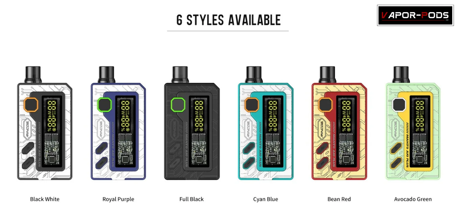 บุหรี่ไฟฟ้ายี่ห้อ Rincoe รุ่น MANTO AIO PLUS กำลังไฟสูงสุด 80 วัตต์ เล่นฟีลสูบได้หลากหลาย เปลี่ยน Drip tip ได้ การดีไซด์เหมือนเล่นเกมย้อนยุคสมัยประถม ทำให้ได้ฟีลวัยสดใส ใครที่กำลังมองหาพอตไฟฟ้าฟีลสูบเล่นได้เยอะซักตัวสามารถสอบถามทางร้านได้ที่ไลน์ OFFICIAL @vppodss