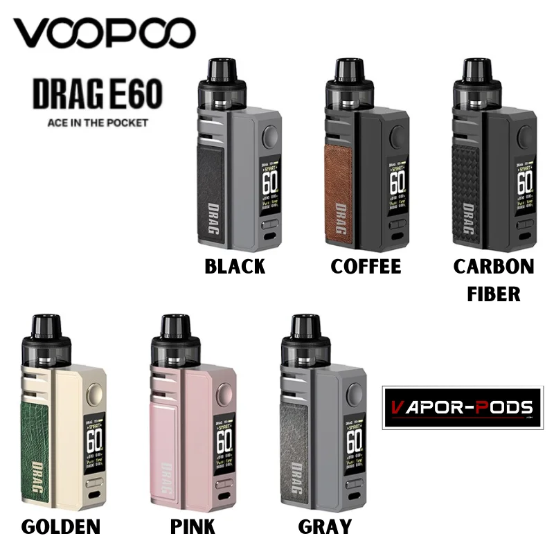 VooPoo แดร็ก E60 มาพร้อมสีที่แตกต่างกัน 11 สี เพิ่มความพรีเมี่ยมมาด้วยหนังเย็บมาอย่างสวยงาม (สำหรับสี carbon-fiber จะไม่มีส่วนของหนัง)